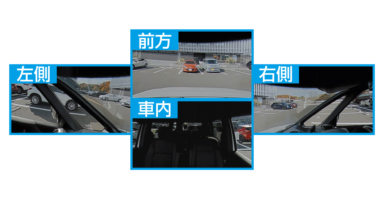 360°カメラで前方の映像だけでなく、側方・車内の映像も記録可能。